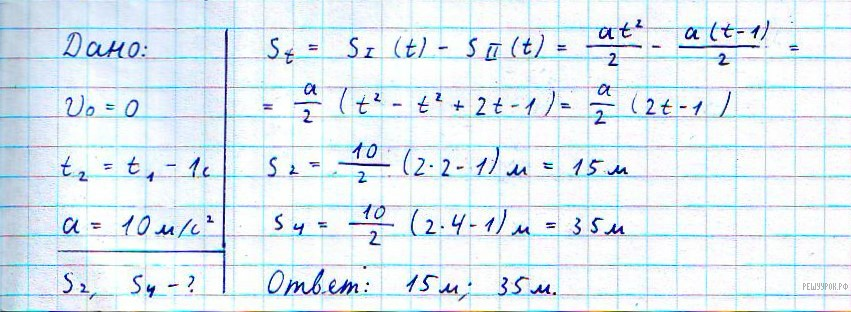 Версия для печати и копирования в MS WordС вертолета сбросили без начальной скорости два груза, причем второй на 1 с позже первого. Определить расстояние между грузами через 2 с и через 4 с после начала движения первого груза.