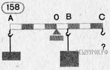 На рисунке изображен однородный стержень, ось вращения которого находится в точке О. На нем в точках А и В подвешены грузы массой 0,2 и 0,4 кг соответственно. Груз какой массы должен быть подвешен в точке С, чтобы стержень находился в равновесии?